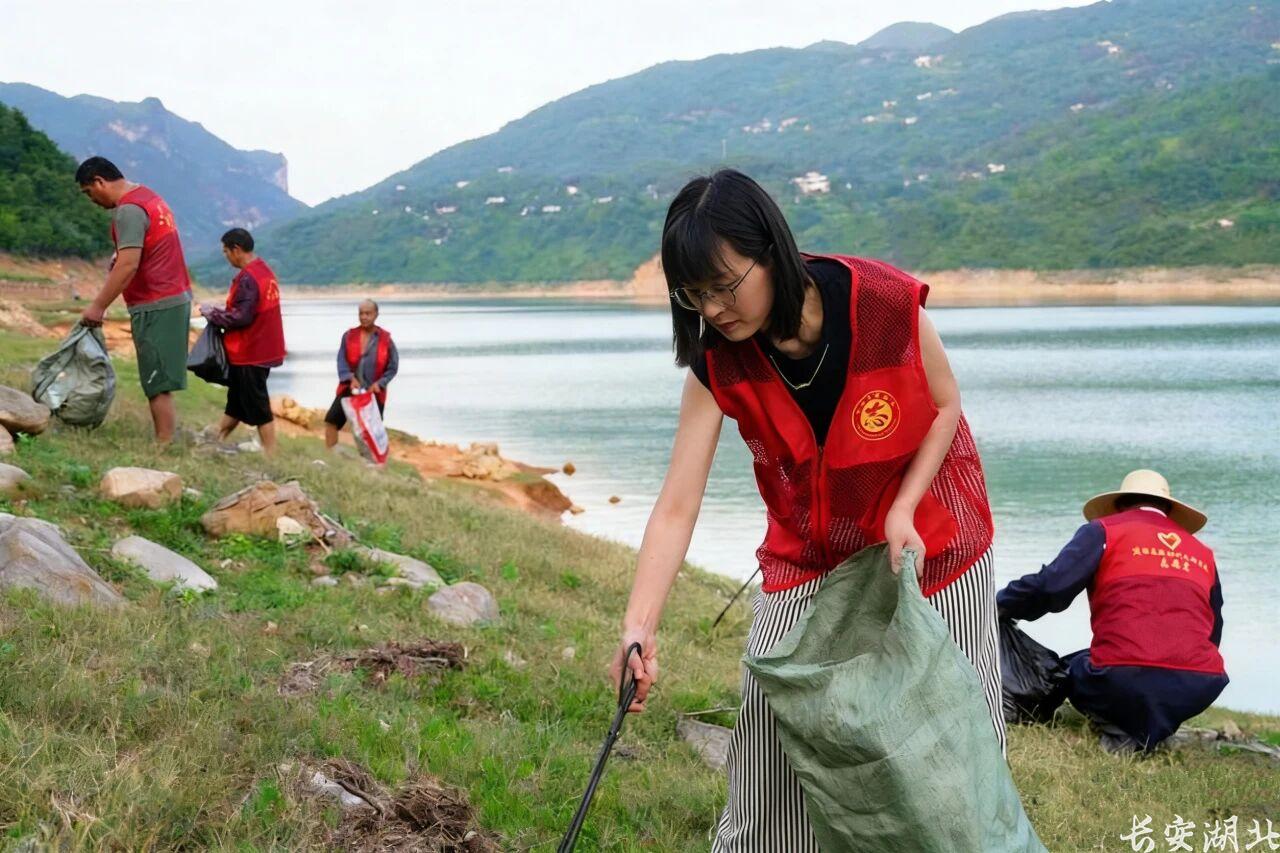 本文作者、湖北省人大代表黄彩森(右二)正带领村民清理清江岸边垃圾