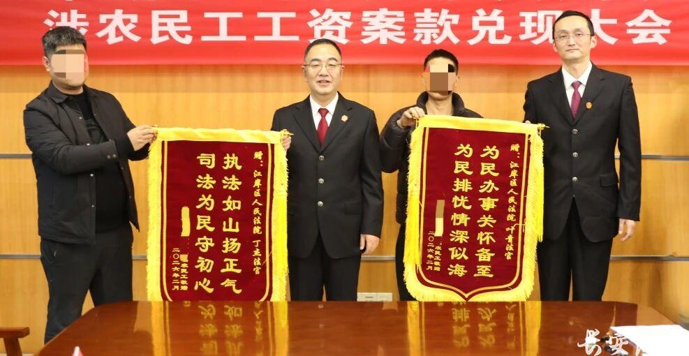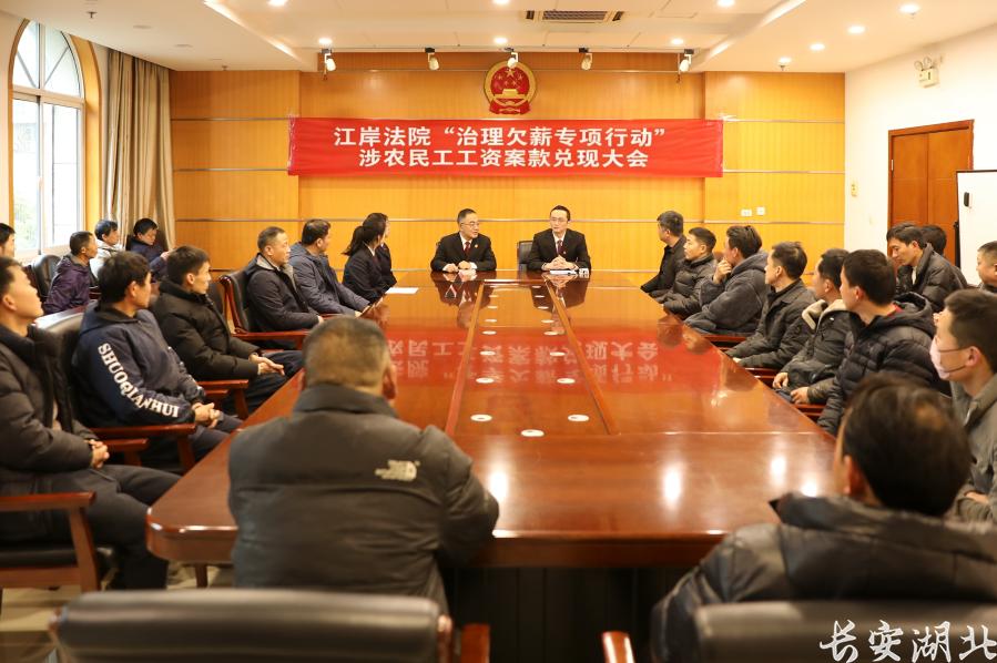 年关将至,寒意料峭,湖北省武汉市江岸区法院执行局接待室里却是暖意融融,一场案款集中发还活动正在这里开展,26名农民工兄弟到场,从法官手中接过期盼已久的工资。