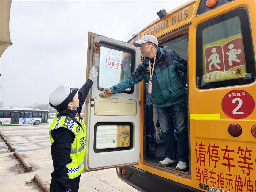 “车载灭火器临近失效,在开学前全部整改完毕。”2月28日,武汉市公安局东西湖区分局交通大队开展校车安全专项检查,对辖区76台校车的制动、灯光、安全带、灭火器等关键设备逐一查验,现场督促整改隐患,坚决杜绝校车“带病上路”。