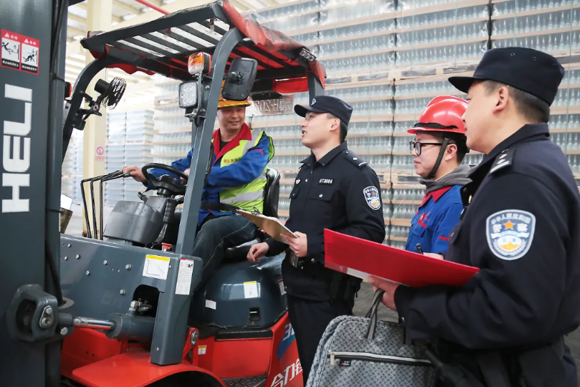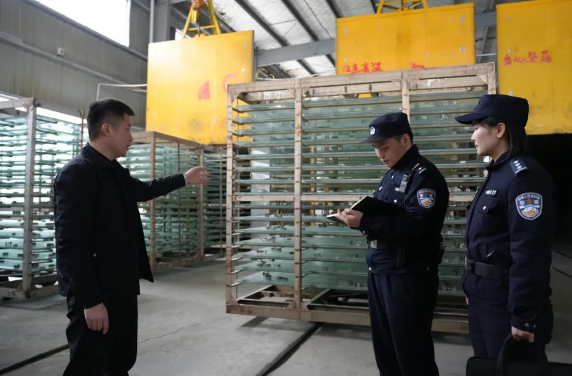 黄石市公安局开发区·铁山区分局铁山派出所社区民警到辖区某企业开展安全检查。针对检查中发现的问题,民警当场下达整改意见书,确保隐患闭环清零,助力企业拧紧“安全阀”。充分发挥“警企联络员”机制优势,推动警务前置、关口前移,主动上门开展一对一“安全体检”,全力以“复”护航经济“开门红”。