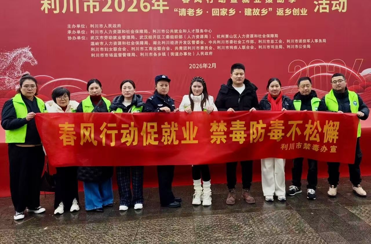 3月5日,恩施利川市公安局联合市人社局,将禁毒宣传融入“春风行动招聘会”,组织禁毒志愿者通过仿真毒品模型展示、发放宣传资料、面对面讲解等方式,向求职者和群众普及禁毒知识,以实际行动弘扬雷锋精神,传递禁毒正能量。
