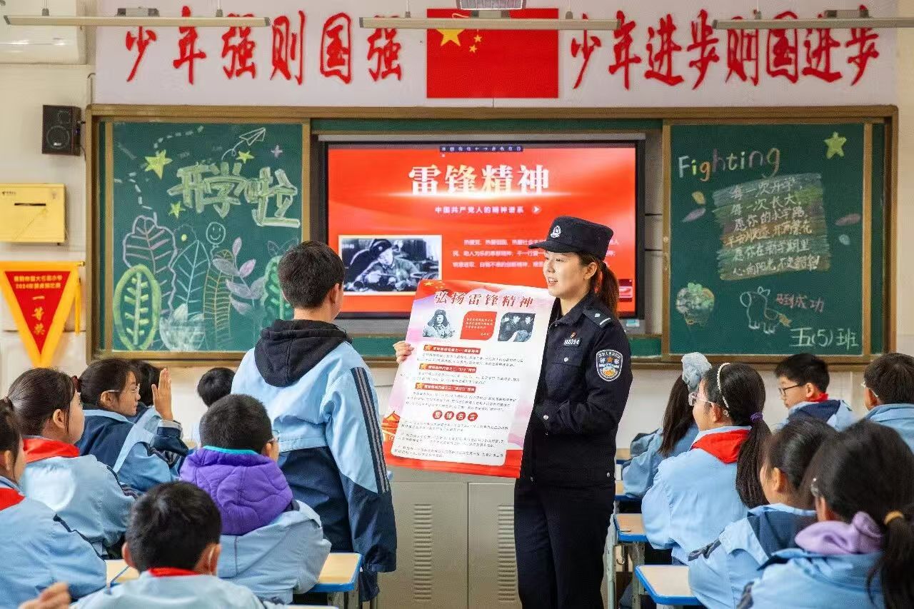 3月4日,襄阳市公安局襄城区分局治安大队民警联合檀溪派出所走进辖区小学,将学雷锋主题教育与校园安全宣传相结合,为孩子们送上一堂生动又有温度的“开学第一课”。民警通过互动抢答、情景分享等趣味形式,引导大家从身边小事做起,在校园里团结友爱,在生活中乐于助人,让雷锋精神融入日常学习生活。