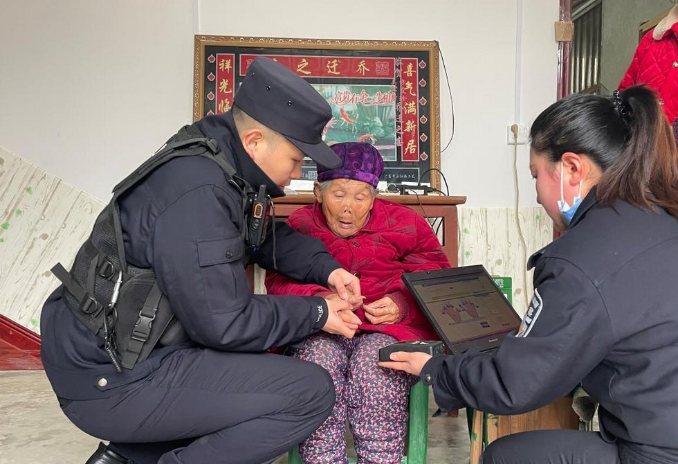 红岩派出所民辅警到偏远山区为年迈老人办证。