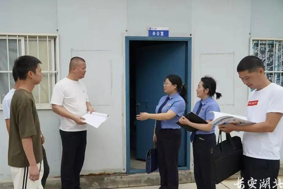 图为2025年6月19日,石首市检察院承办检察官与市劳动保障维权中心工作人员在该项目现场开展回访工作。