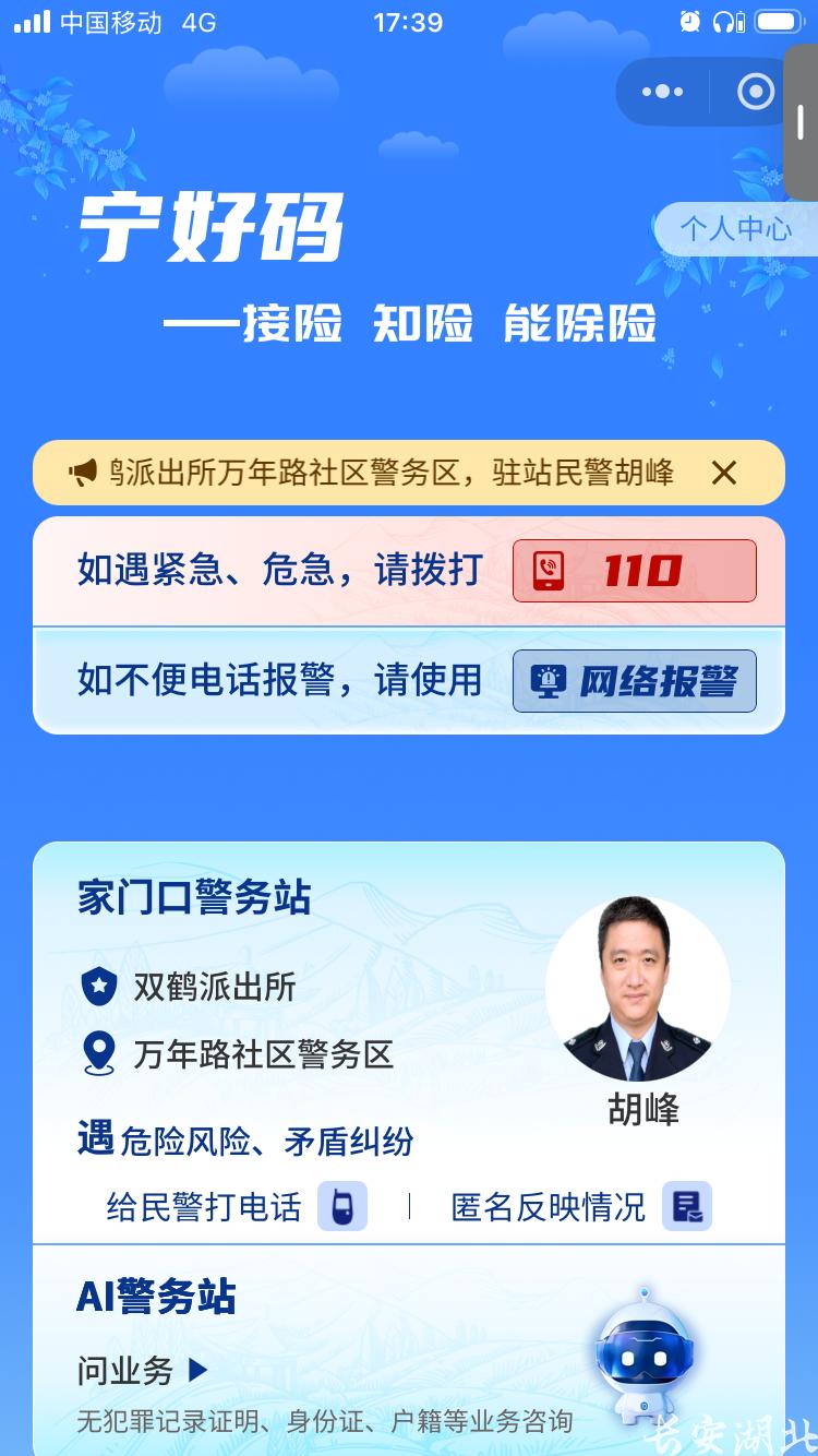 功能一:一键找民警。在外务工的通城县居民刘先生,因身份证过期影响日常使用,却苦于不知老家社区民警信息无法咨询。通过“宁好码”切换定位后,辖区民警信息、联系电话即刻呈现,一通电话便顺利解决难题。“扫个码就能找到负责民警,不用来回奔波,既省钱又省心!”刘先生连连称赞。小小二维码,联通的不仅是通讯线路,更是警民之间的信任纽带。