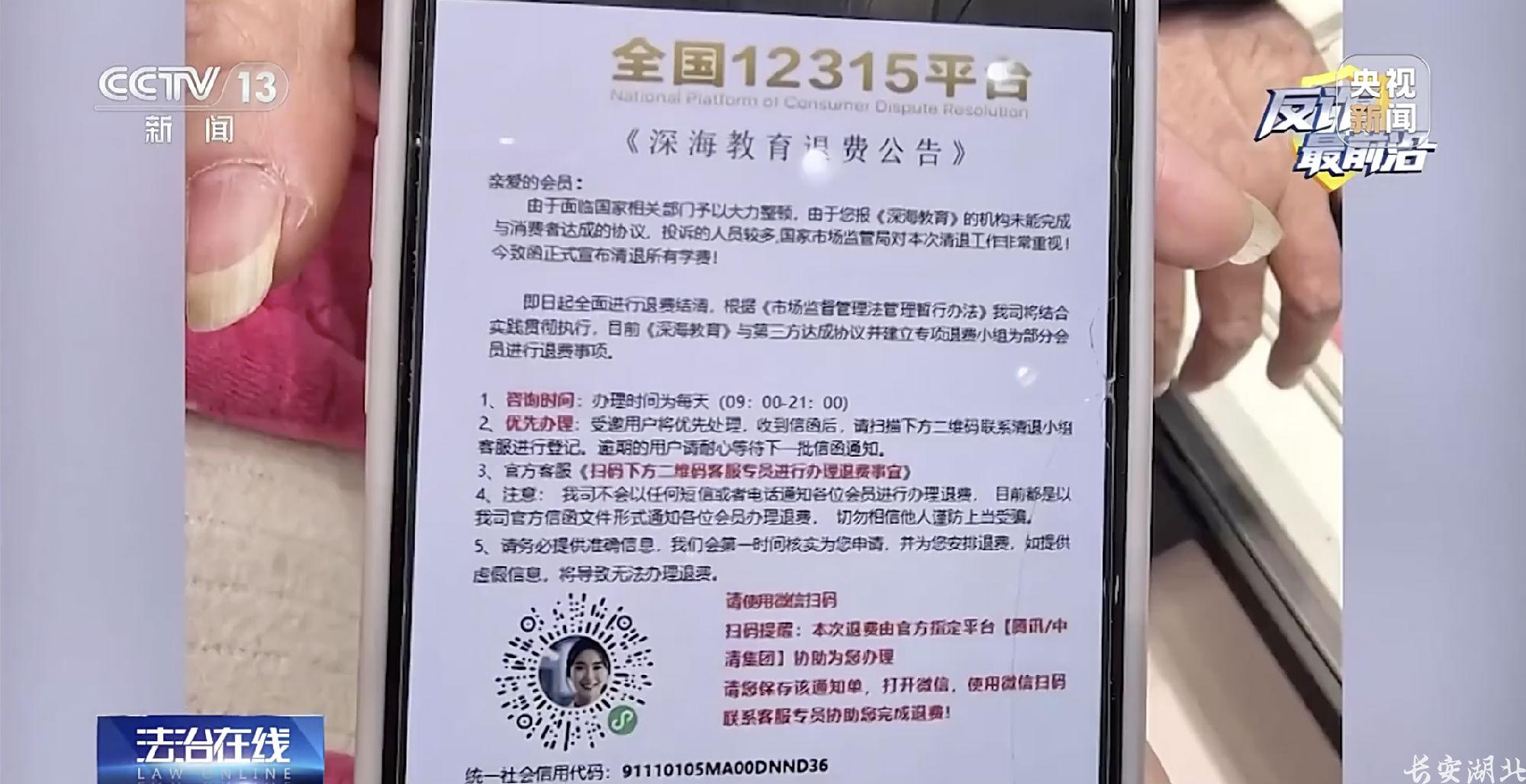 她按照公告要求,扫描二维码下载了一款陌生App,App内的客服随即将她拉入一个群聊,群内成员都自称是等待培训机构退费的受害者。民警介绍,“群记录基本上都是已经退费成功,退费了多少钱,很感谢这个软件的说法。”