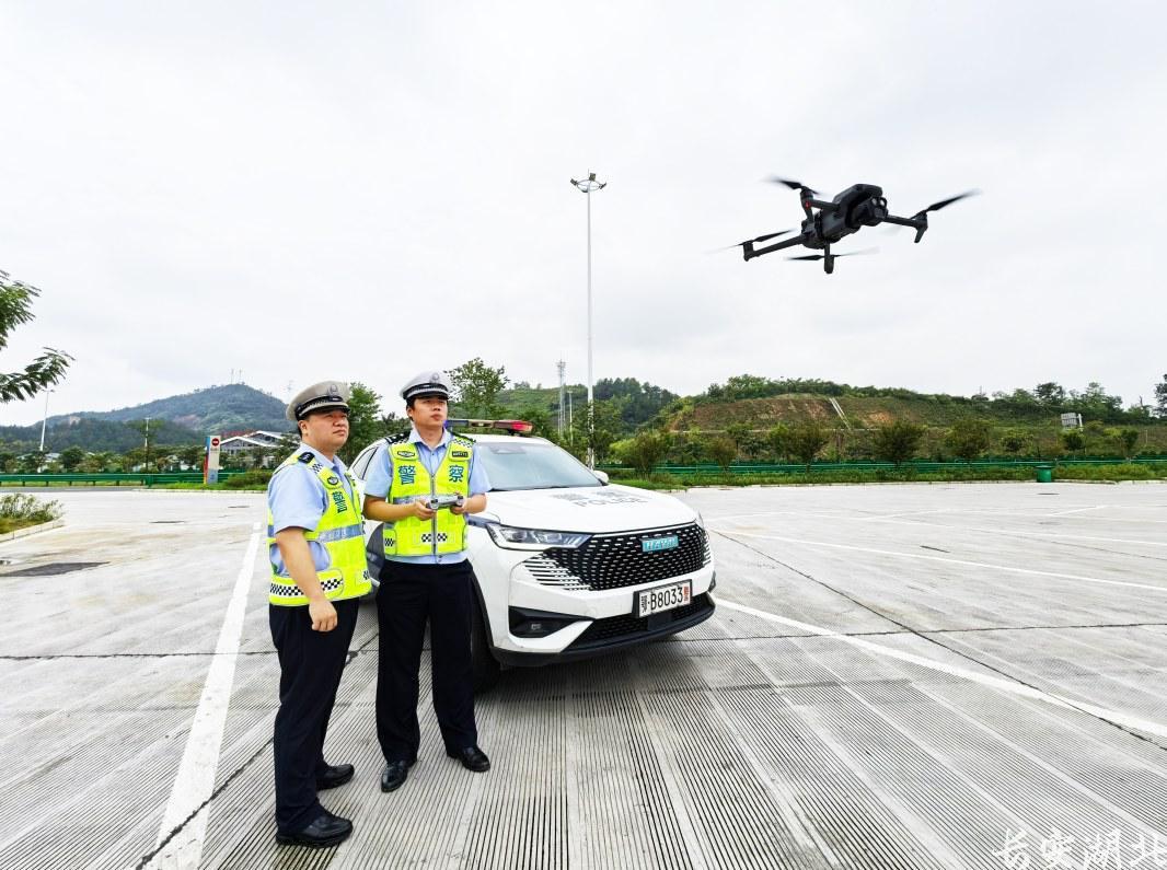 民警操控无人机开展高速公路路况巡查