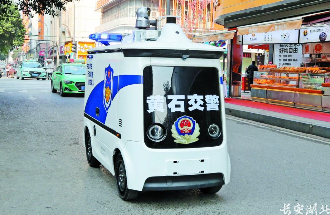 黄石交警“无人车”街面巡逻
