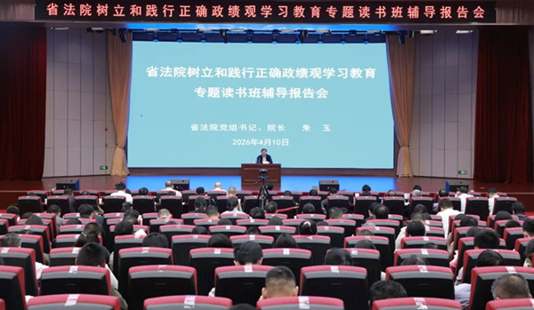 树立和践行正确政绩观学习教育开展以来,湖南高院党组牢牢把握学习教育总要求,一体推进学查改,通过召开党的建设工作领导小组会议、党组扩大会、党组理论学习中心组集体学习、举办读书班等多种形式,扎实深入开展学习教育。4月10日上午,在前期基础上,湖南高院举办树立和践行正确政绩观学习教育专题读书班辅导报告会。湖南省高级人民法院党组书记、院长朱玉出席并作专题辅导。