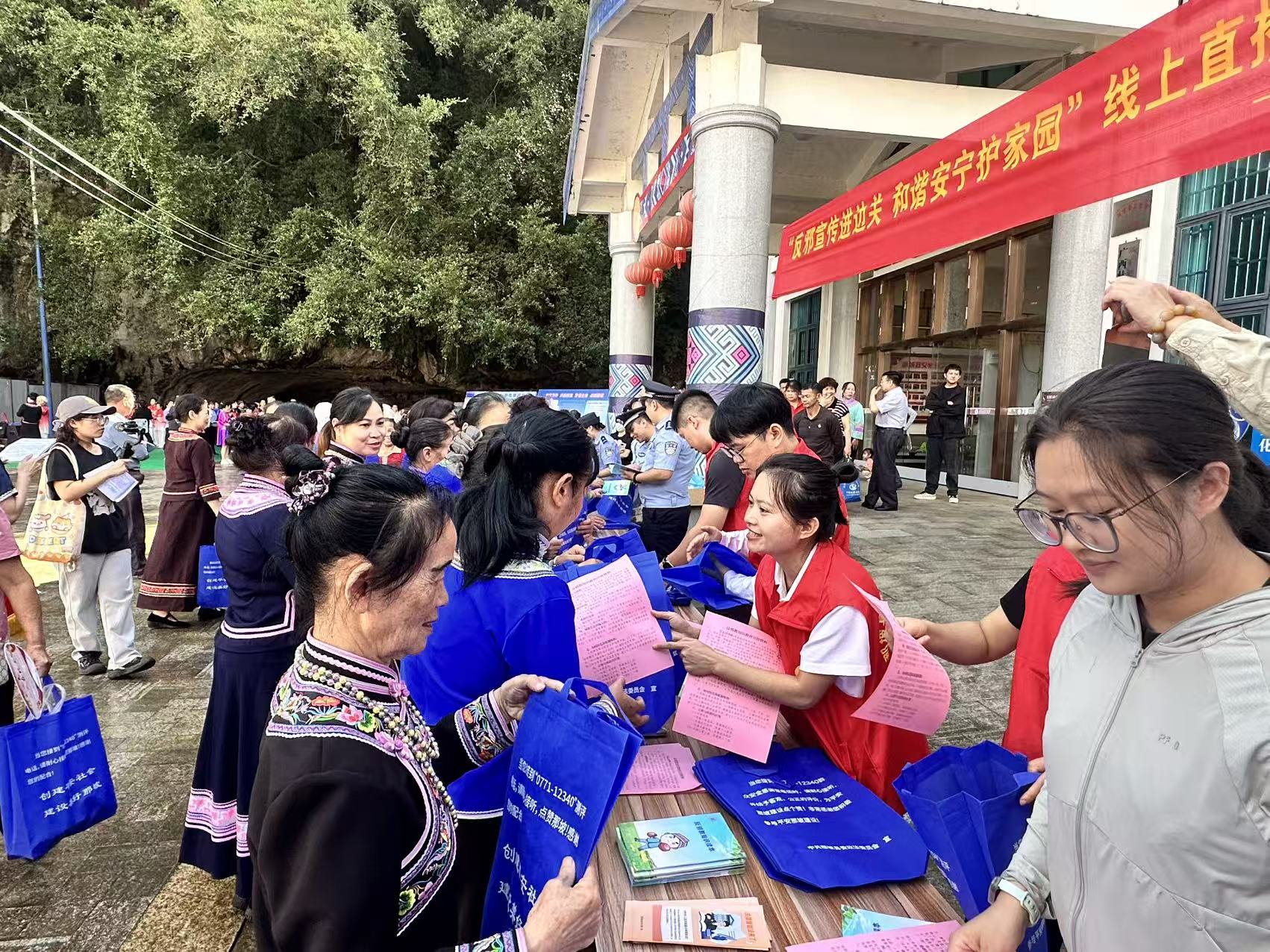 那坡县境内生活着壮族、汉族、瑶族、苗族、彝族、仫佬族等6个民族,国界线长206.5公里,是广西陆上疆界线最长的县份之一。针对边境地区多民族聚居、文化多元的特点,那坡县创新“法治+民族团结”宣传模式,组建双语普法小分队,深入边境线上的瑶寨、苗岭彝村,用民族语言讲解宪法、民法典中关于民族团结、边境管理的条款,以及反诈、禁毒等与群众生产生活密切相关的法律知识。今年全县累计开展“法治边关行”活动30余场,覆盖群众6万人次。