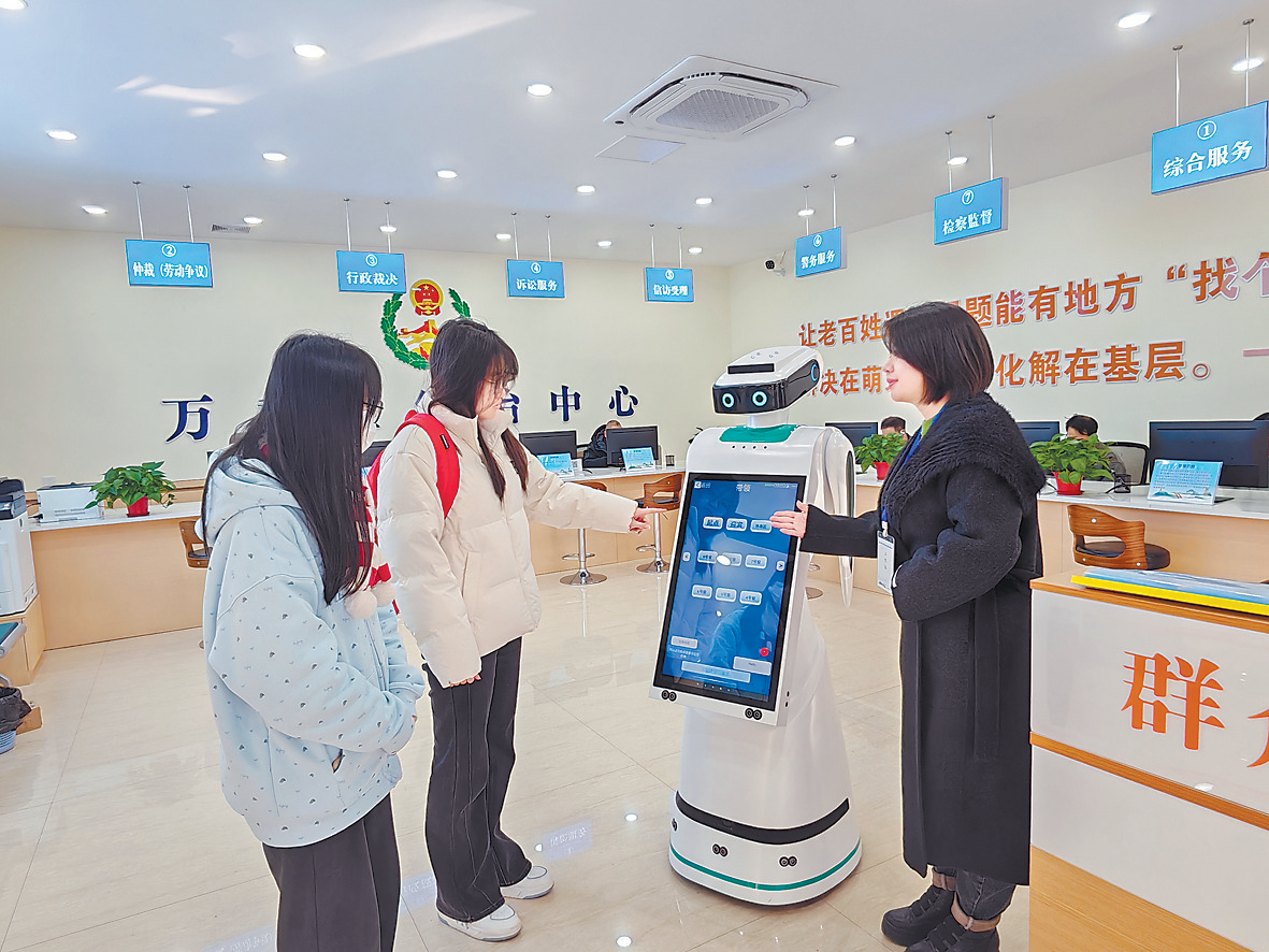 12月12日上午10时许,在广西壮族自治区梧州市万秀区综治中心,身高1.6米、造型圆润可爱的智能机器人“小澳”,正像迎宾员一样立在入口处。