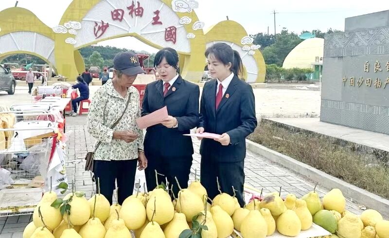 容县法院法官们走进果园,手把手告诉果农如何使用“人民法院在线服务”智慧平台进行网上咨询、网上立案,同时就品种权保护、品牌仿冒、包装侵权、电商销售及贸易环节遇到的知识产权等法律问题,现场释法析理、答疑解惑。如今,沙田柚产业带动容县全县10万余人就业。