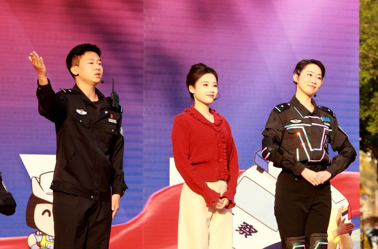 音乐情景剧《警营里的“AI担当”》通过巧妙表演形式,呈现智慧警务的高效服务,反诈脱口秀《不要你觉得 我要我觉得》用幽默互动揭秘电信网络诈骗套路,歌舞《无敌“螺警官”》和小品《反诈课堂教学》则通过朗朗上口的歌曲旋律与生活化表演普及防骗知识。歌曲串烧《平安随行》与男女声组唱《一路同行》则温暖传递警民同心与交通安全的平安理念。诗歌朗诵《我们的节日》和情景歌舞《警察故事》深情诠释人民警察忠诚履职、无私奉献的职业精神。