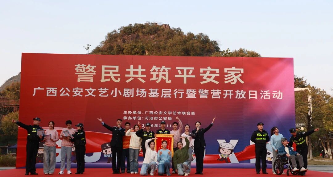 1月11日,一场由广西壮族自治区公安文学艺术联合会与河池市公安局精心打造的文艺小剧场基层行走进河池市宜州区,以群众喜闻乐见的文艺形式和轻松有趣的互动体验,将安全防范知识、法律法规宣传融入群众欢声笑语之中,让现场观众真切感受到了新时代人民警察的忠诚担当、创新活力以及守护平安的坚定决心。