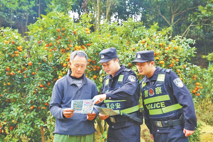 岑溪市公安机关创新“定点值守+动态巡逻+专班攻坚”的防控模式,守护果农利益。去年以来,全市共破获涉农盗窃案件12起,抓获违法犯罪嫌疑人15人,为农户挽回经济损失20余万元。农户的安全感和满意度显著提升。