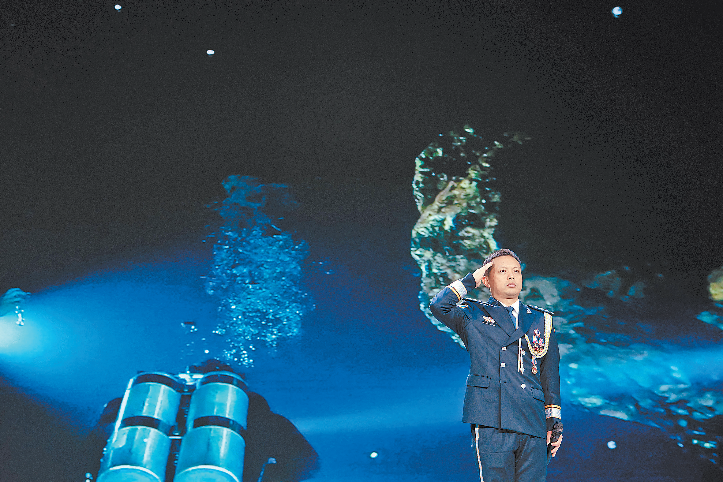 闫明在2025“最美基层民警”发布仪式上讲述洞穴潜水救援故事。