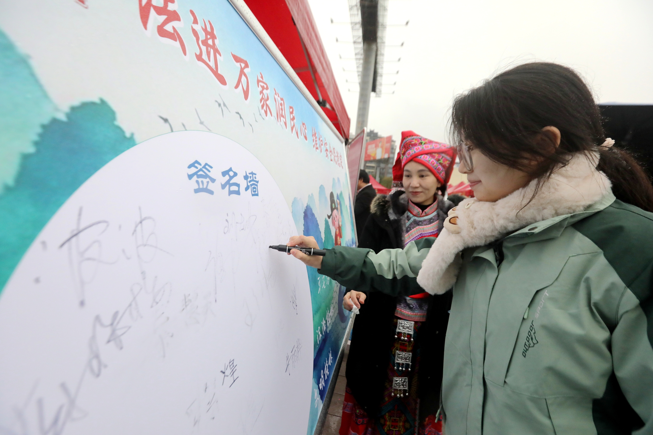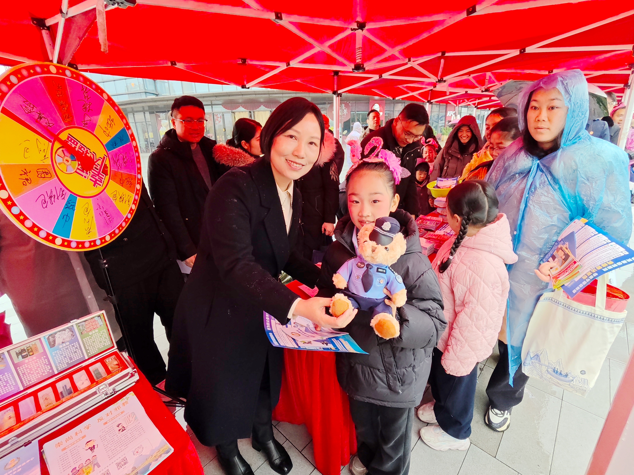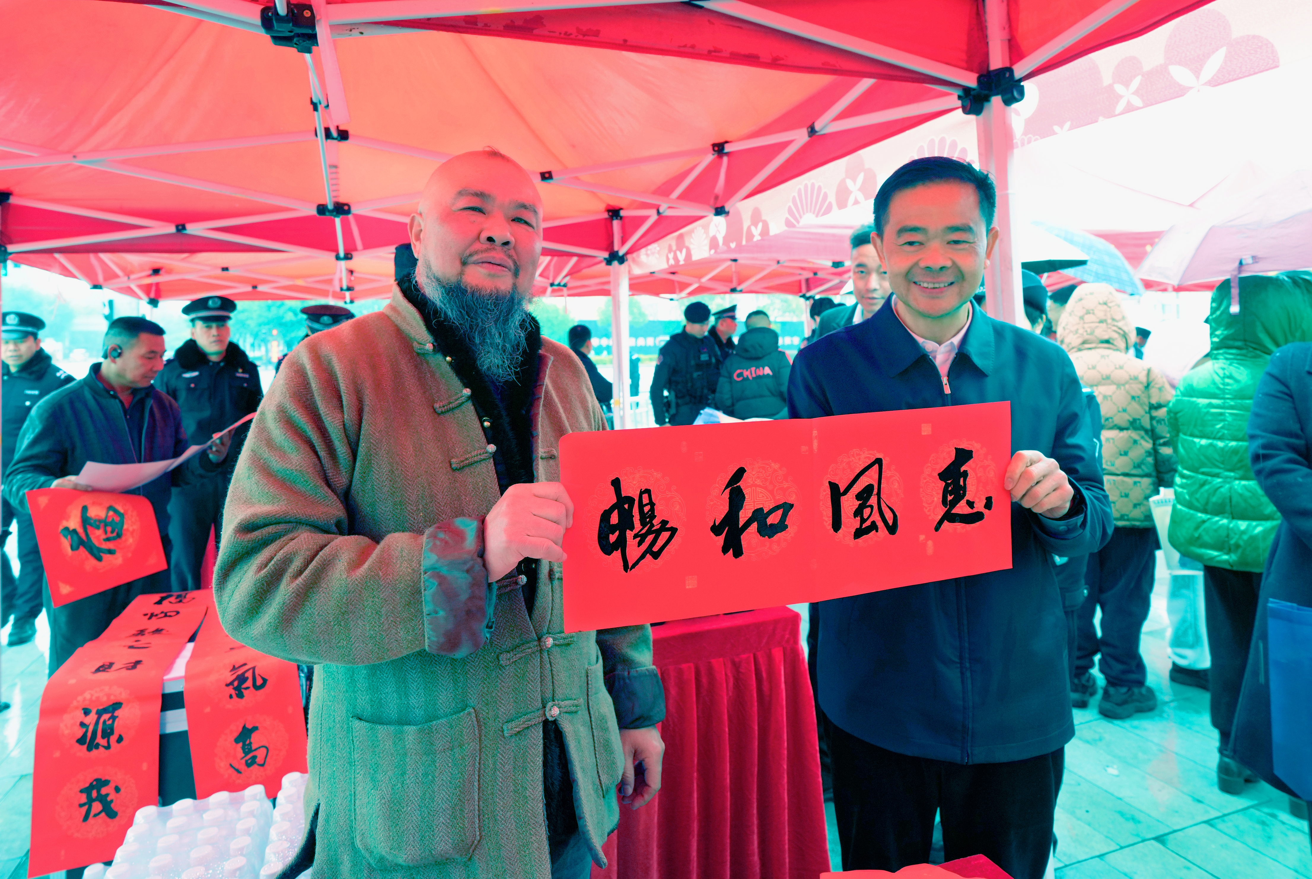 当天尽管春雨潇潇,现场依然气氛热烈,市民们驻足交流、积极参与,为即将到来的春节增添了一份真挚而明亮的温情底色。