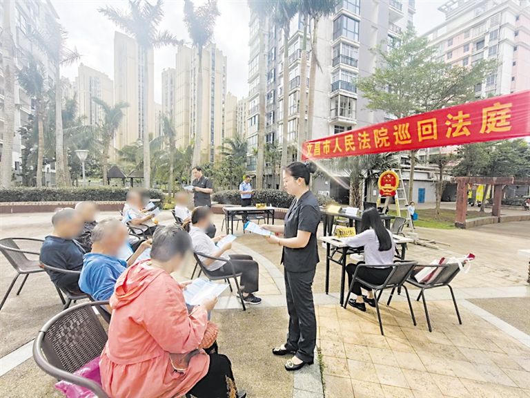 文昌法院会文法庭干警在月亮城小区开展普法宣传。(文昌法院供图)