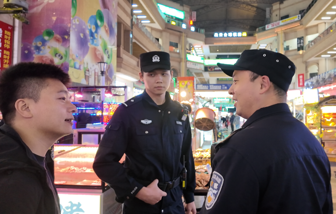 长滨派出所民警在辖区内商业体巡逻,与商家亲切交谈。记者吴静怡 摄