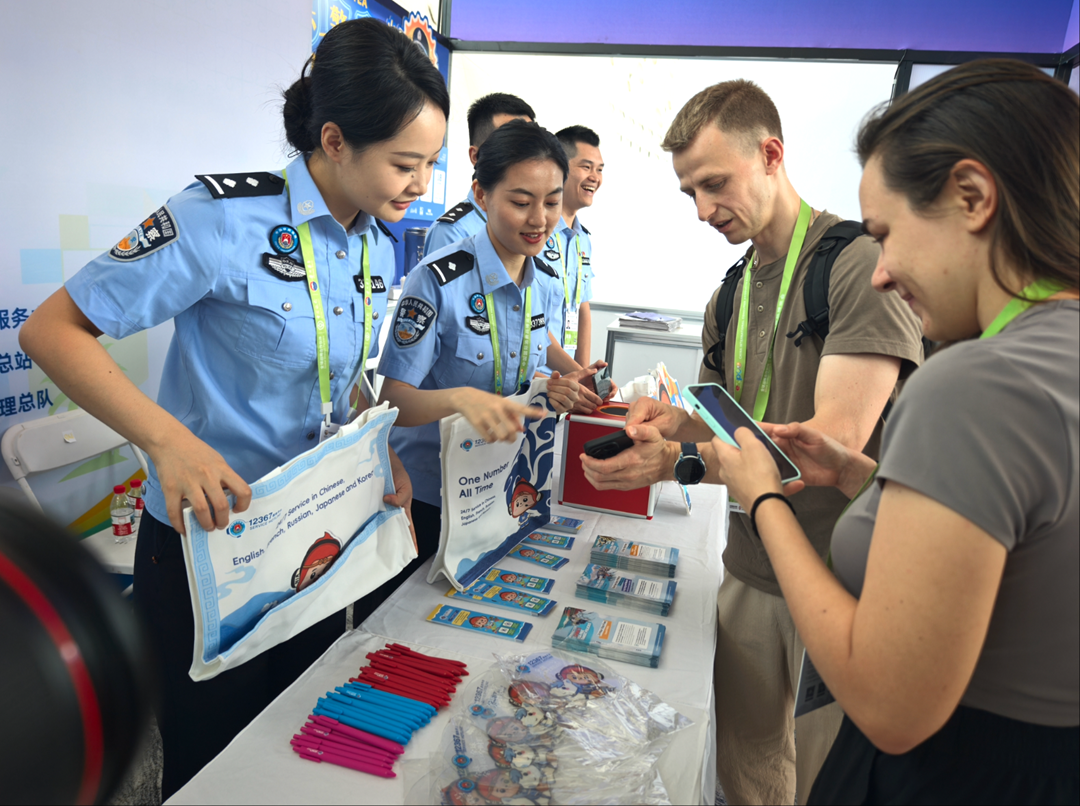 消博会期间,国家移民管理局移民事务服务中心联合海口边检总站、海南省公安厅出入境管理总队举办专题宣介、现场咨询、互动问答等形式多样的国家移民管理12367服务平台(以下简称12367服务平台)推广活动,以高效精准服务,为中外宾客搭建起了解中国移民管理政策的重要窗口。
