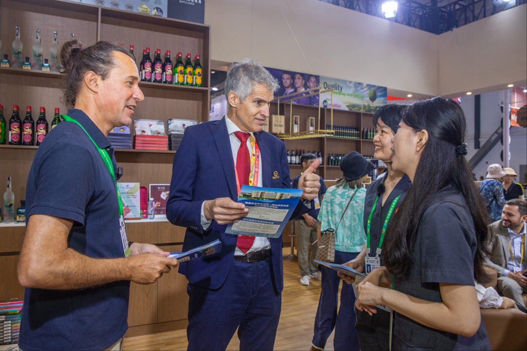 法国红酒、瑞士腕表、捷克水晶杯、马来西亚燕窝……作为全球特色消费展区,4号国际馆展区展示来自60多个国家和地区的优质消费精品,涵盖高端食品保健品、精品酒饮、美妆个护、轻奢腕表、珠宝首饰等品类。