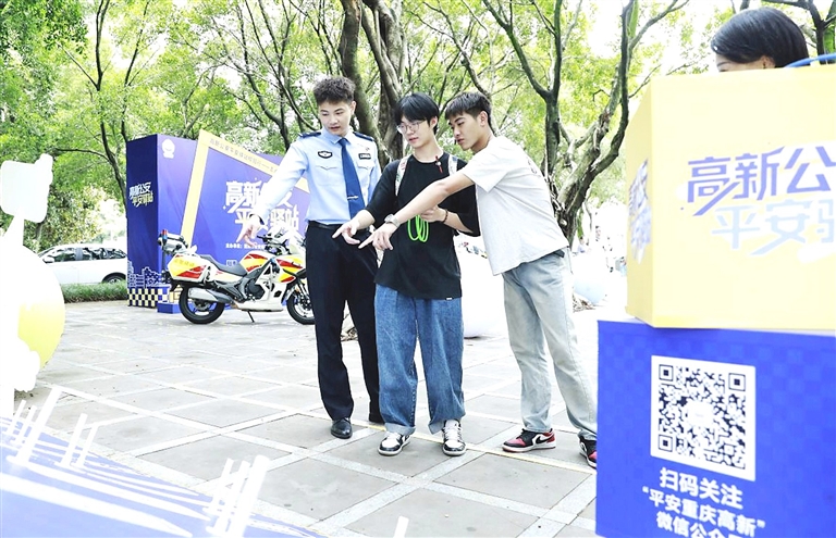 针对不同高校学生特点,该局创新宣传形式,打造沉浸式反诈体验。9月8日在重庆大学,民警结合大学生群体喜好,策划开展反诈主题游园活动。活动现场设置“反诈知识闯关”“案例情景模拟”“防骗技巧互动”等趣味环节,将刷单返利、校园贷、冒充客服退款等常见诈骗套路融入游戏场景。学生们在趣味问答、反诈桌游等互动形式中主动参与,积极向民警咨询防骗疑问,民警同步发放反诈宣传手册,手把手教学识别诈骗话术、保护个人信息。这种打破传统的宣传模式,让反诈知识“活”起来,累计吸引千余名学生参与,有效提升了学生自我防护能力。