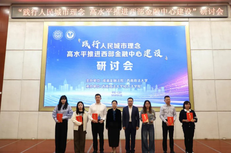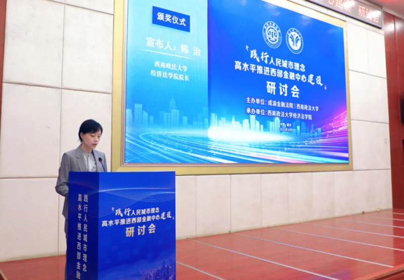 研讨会上,举行“高水平金融法治保障高质量金融发展”主题征文活动颁奖仪式,西南政法大学经济法学院院长陈治宣读获奖作者名单,成渝金融法院党组成员、副院长成春主持颁奖仪式。此次主题征文活动由成渝金融法院、西南政法大学、西南财经大学联合举办,共评选出一等奖6篇,二等奖10篇,三等奖15篇,优秀奖15篇。