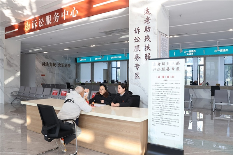 法院工作人员在适老助残扶弱服务专区接受老年人咨询