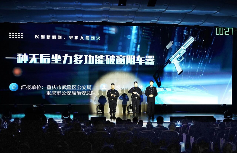 武隆区公安局和治安总队推出的“多功能破窗阻车器”,能让处置民警在安全距离外,精准击破目标车辆车窗并释放安全级刺激剂,有效控制嫌疑人、防止事态升级,切实助力安全精准处置。