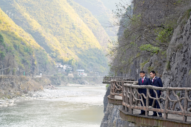 巫溪县检察院长江生态检察官回访查看巫盐古道保护修缮点位。