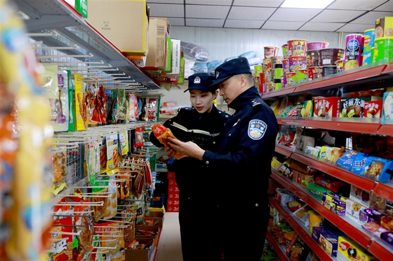 民警检查校园周边商铺