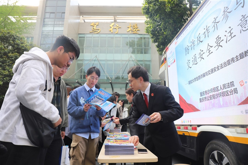 近日,重庆市沙坪坝区人民法院行政审判庭将一起公安交管部门行政处罚诉讼案的庭审现场搬进西南政法大学,并在庭后开展法官现场答疑、“车载便民法庭”普法等活动,为该校师生带来了一堂沉浸式、实景化的法治公开课,300余名大学生及部分市人大代表参加活动。
