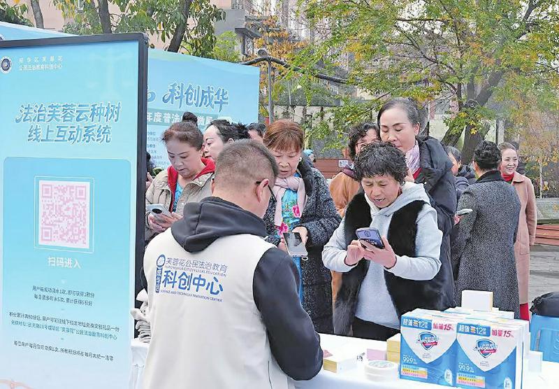 1月30日,“法治‘潮’玩科创成华”——法治互动市集暨年度普法成果微展在芙蓉花公民法治教育科创中心广场举行。“法治芙蓉云种树”“法治谜宫”“反诈视力表”等趣味环节人气爆棚,居民们在游戏中学习法律知识、在互动中感受法治精神。