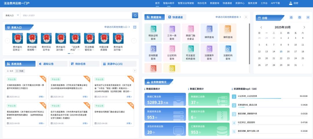 数据的活力在于响应需求。今年5月,铜仁市法律援助中心提出,希望核查法律援助申请人是否属于低保人员。“法治贵州云”项目团队通过贵州省政府数据共享交换平台,向贵州省民政厅申请了数据接口,仅用三天时间,就在全省90余个法律援助中心上线了低保人员信息核查功能。这种快速响应机制,让数据精准赋能基层业务,使公共法律服务更加公平可及。