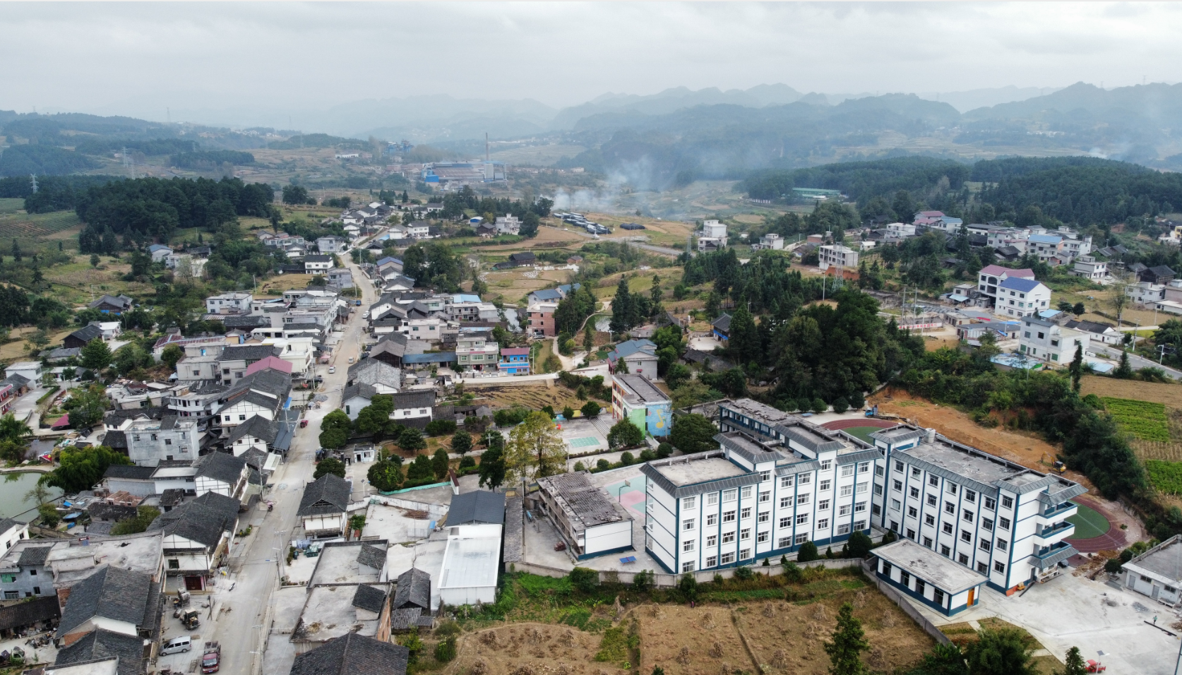 时入初冬,黔岫含翠;炊烟袅袅,灯火可亲。