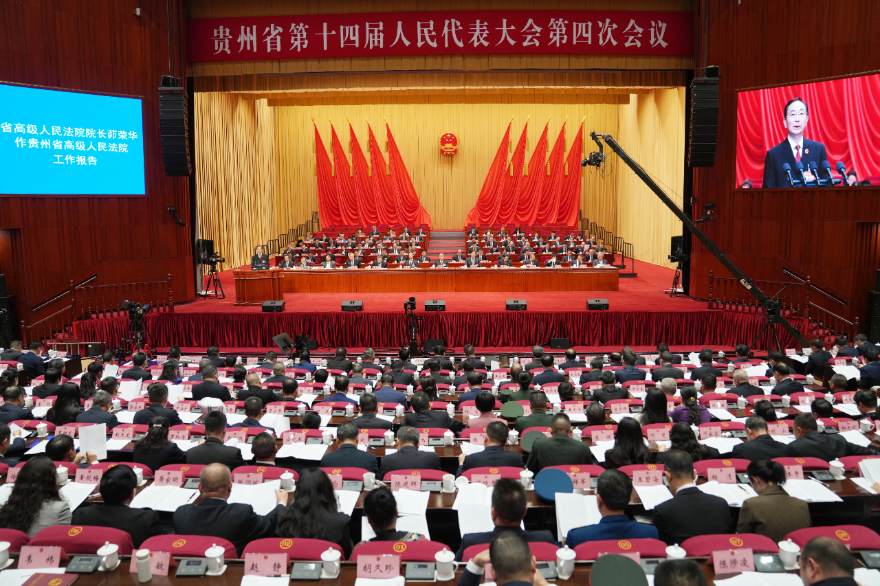 1月29日上午,贵州省高级人民法院党组书记、院长茆荣华代表贵州高院,向贵州省第十四届人民代表大会第四次会议报告法院工作。