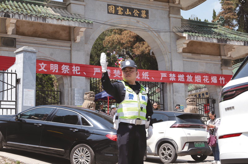 在贵阳,各交警大队聚焦重点路段和关键区域,全面开展交通秩序整治。针对福泽园公墓等祭扫热点区域实施单向通行管制,执勤民警提前到岗,引导车辆有序分流、规范通行。