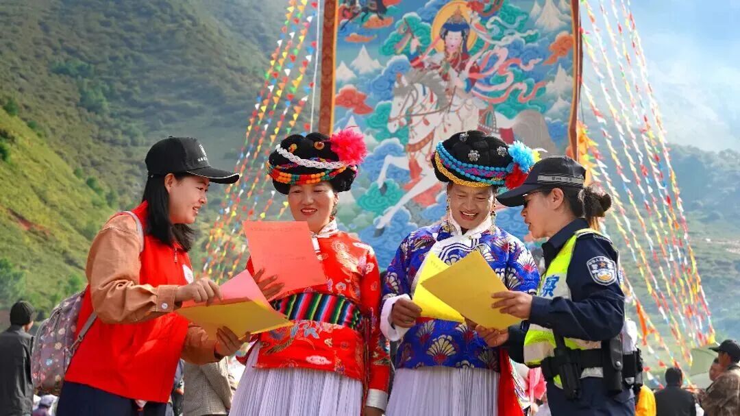 宁蒗县公安局泸沽湖派出所、永宁派出所民辅警在活动主会场设置法治宣传点,用通俗易懂的语言向现场群众普及道路交通安全、防诈反诈、防毒禁毒等法律知识,提醒广大群众将安全放在首位,自觉抵制各类违法行为。
