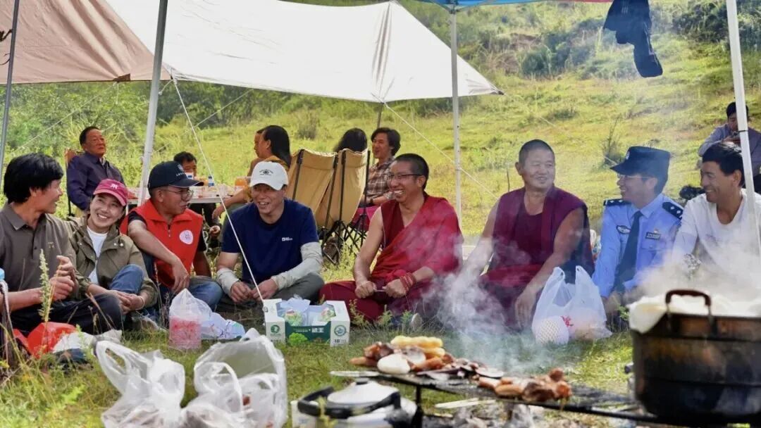 转山节当天,摩梭人带着虔诚的信仰,扛着经幡,背着锅碗瓢盆,携带当地高原红米、酥油茶、洋芋、肉类等特色美食来到格姆女神山下,搭起传统火塘,一家人围坐在一起,或品尝美食,或祈福纳祥。作为土生土长的永宁摩梭人,永宁司法所所长阿剑宁凭着对摩梭语言的精通和对法律知识的深刻理解,走到群众身边,以“唠家常”的方式为当地群众详细解读民法典、《云南省泸沽湖保护条例》等法律条文,亲切自然的普法方式,群众不仅听得懂,还记得更牢。