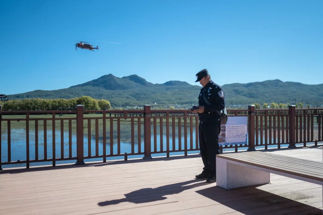 “大落水村水质清澈,水面上无漂浮物……”9月30日一早,宁蒗彝族自治县公安局副局长、泸沽湖派出所所长杨晓东一边利用警用无人机对泸沽湖进行巡查,一边记录当日湖水情况。杨晓东的另一个身份,是河湖片警长。