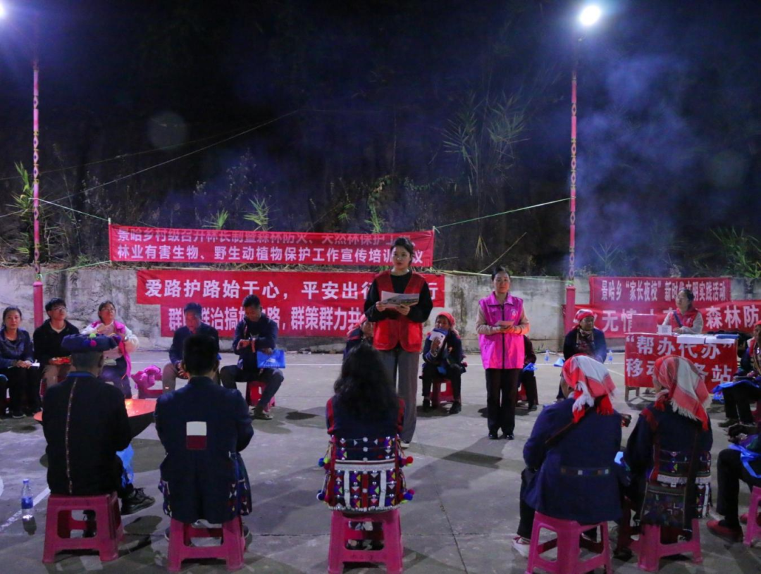 活动期间,普法志愿者向参与互动的群众发放雨伞奖励,同时为现场所有群众发放爱路护路宣传无纺布袋子40个、帆布袋20个、雨伞10把,将普法宣传与实用物资相结合,让爱路护路理念随物资走进千家万户。此次“火塘夜话”活动,既延续了哈尼族传统民俗的温情,又彰显了法治宣传的力度,凭借接地气、覆盖面广、感染力强的优势,有效拉近了干群距离,显著提升了铁路沿线哈尼族群众的爱路护路意识与法治素养,让传统火塘成为传递法治力量、守护铁路安全的“民俗阵地”。