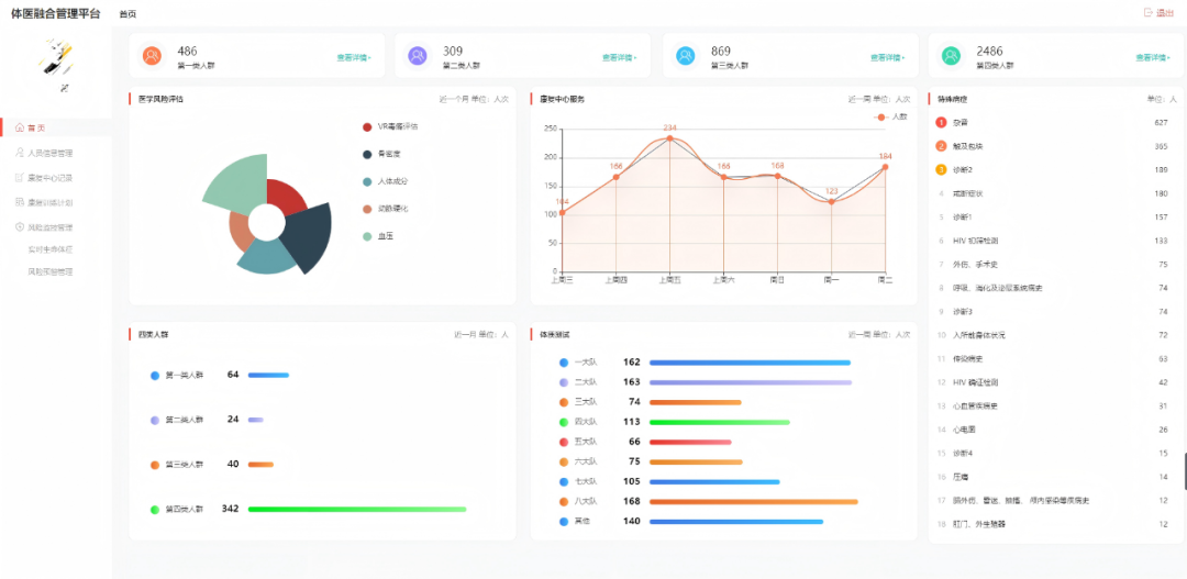 三是建立了智慧戒毒康复戒治融合系统及多模态协同干预技术体系。基于司法行政戒毒“五大专业中心”实体化协同运行机制,构建了涵盖戒毒医疗、康复训练、教育矫正、心理矫治、诊断评估5大模块的智能化融合系统。通过运动医学筛查模型与体质测评数据库,实现戒毒人员运动风险分级与个性化处方生成;依托认知矫正动态评估算法,建立健康行为养成与民族文化特色融合的矫正课程体系;集成多源生理数据(心率、血氧、脑电)与心理评估指标,形成戒毒效果多维度诊断模型。