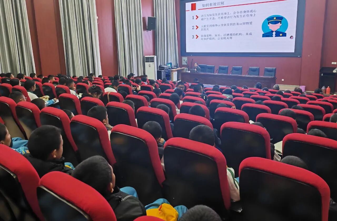 活动现场,自治区司法厅公共法律服务中心援藏志愿律师以《中华人民共和国治安管理处罚法》《中华人民共和国未成年人保护法》《中华人民共和国预防未成年人犯罪法》等法律法规为核心,创新采用“案例讲解+法条解读+互动问答”的形式,用通俗易懂的语言、贴近校园生活的实例,向学生们系统阐述了“校园霸凌”的定义与表现形式、相关法律责任与典型案例分析、自我保护技巧与应对策略,同时发出共建和谐校园的倡议,为同学们带来了一堂兼具专业性与趣味性的“反校园霸凌”普法宣讲课。互动环节中,同学们积极提问、踊跃交流,律师逐一耐心解答,现场氛围热烈浓厚。