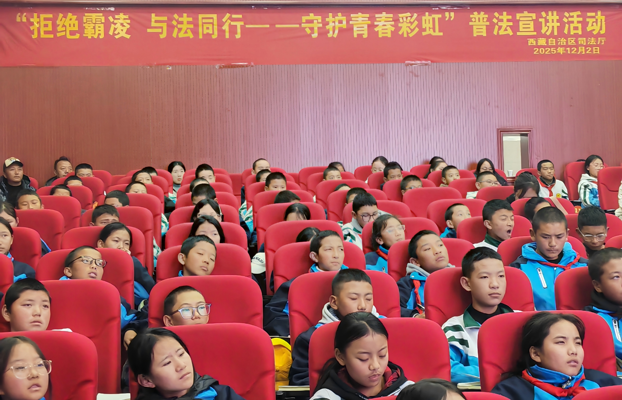 为深入贯彻实施《中华人民共和国未成年人保护法》《中华人民共和国预防未成年人犯罪法》,切实履行法律援助在普法宣传、维护青少年合法权益中的法定职责,有效预防和治理校园霸凌现象,护航未成年人健康成长,扎实推进“法援护苗”专项行动,自治区司法厅公共法律服务管理处党支部于12月2日联合政治部党支部、法治调研与督察处党支部、法律职业资格管理处党支部,邀请1名援藏志愿律师,会同拉萨市教育局、城关区教育局相关负责人,共同前往拉萨市第二中学开展“宪法宣传周”暨“反校园霸凌”普法宣讲主题党日活动,同步提供法律服务志愿支持。