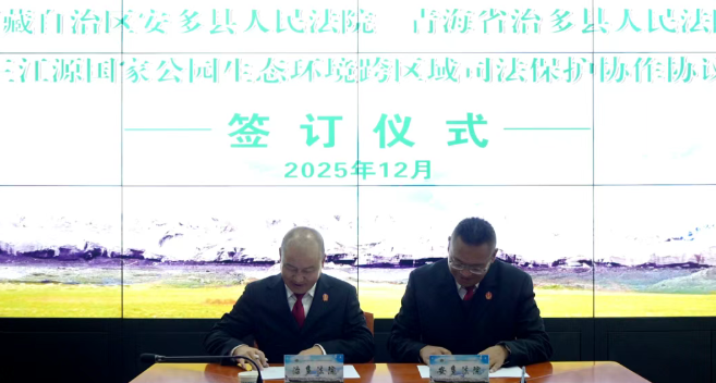 西藏、青海两地山水相连、情谊深厚,守护长江源生态环境是两地法院共同的司法使命与责任担当,此次三县法院携手签订协作协议,为守护青藏两地生态净土、筑牢长江源头生态防线,迈出坚实一步。