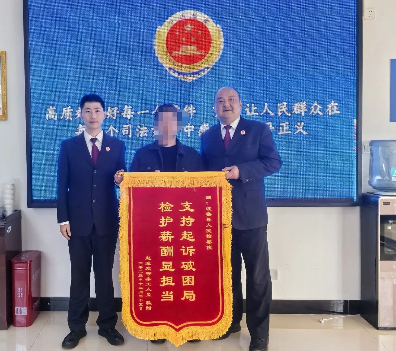 “感谢检察院的帮助,我们回家过年的钱有着落了……”2025年12月25日,在波密县人民检察院12309检察服务中心,务工人员赵某拿着一面印有“支持起诉破困局检护薪酬显担当”的锦旗,激动地握着检察官的手说道。