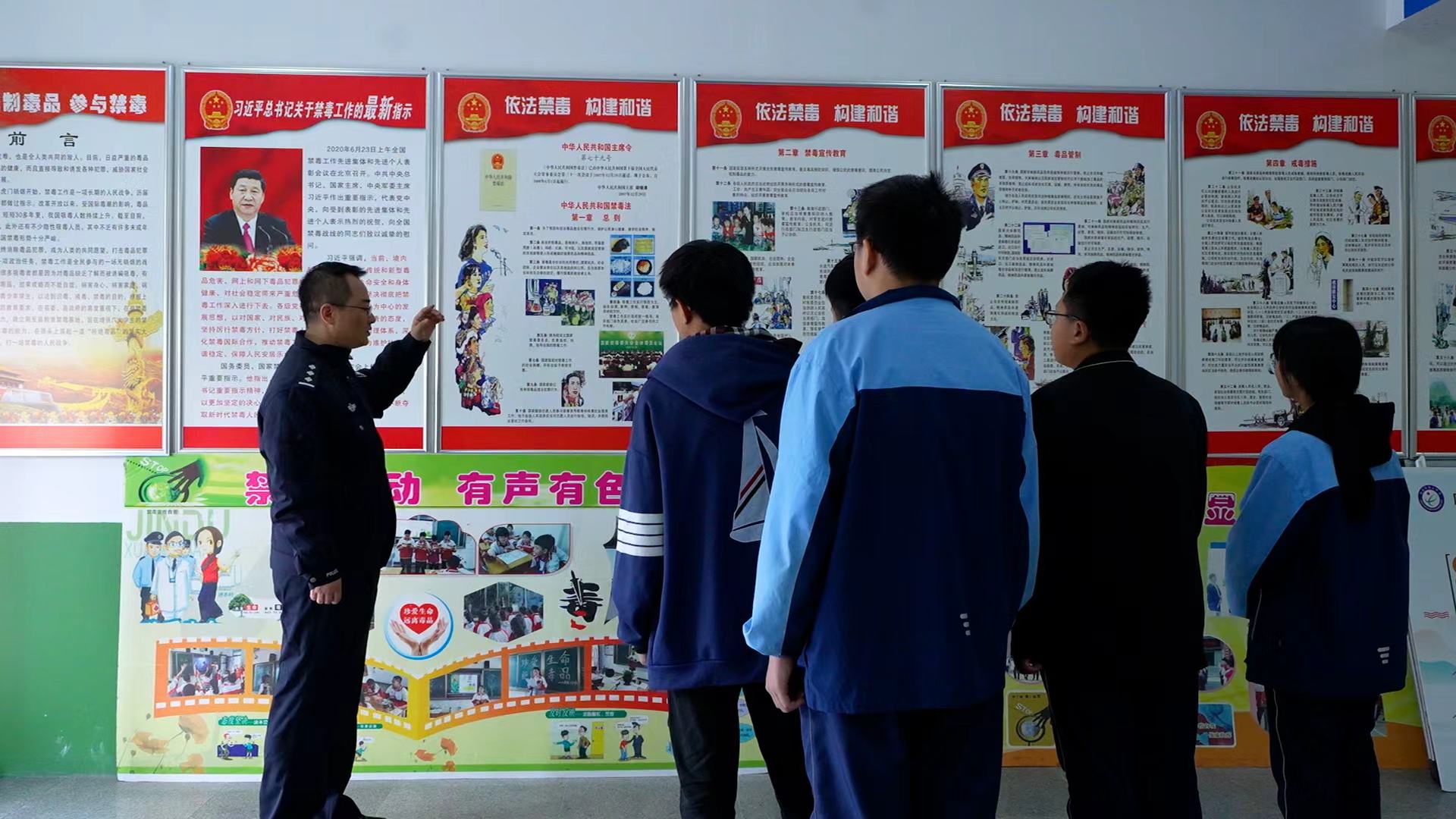 民警依托县禁毒委禁毒教育基地,向未成年人宣传禁毒知识。