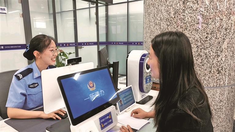 八月五日,在西安市政务服务中心,西安市公安局工作人员为市民办理业务(资料照片)。