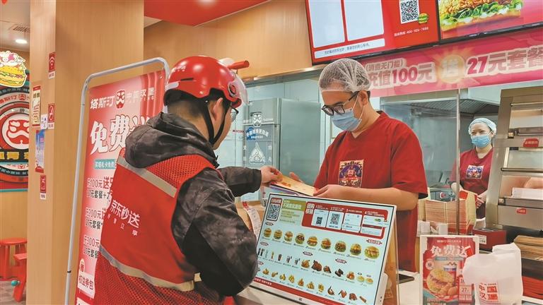12月22日,石泉县外卖员在取餐时,给商户送上“普法礼包”。 许兵 摄