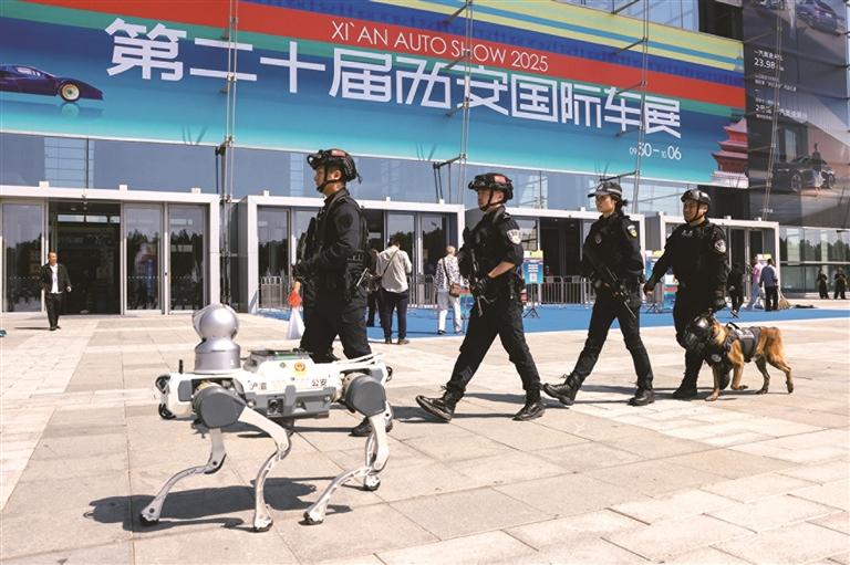 2025年西安国际车展期间,西安市公安局浐灞国际港分局特警队员在西安丝路国际会展中心执勤(资料照片)。王怡丁摄